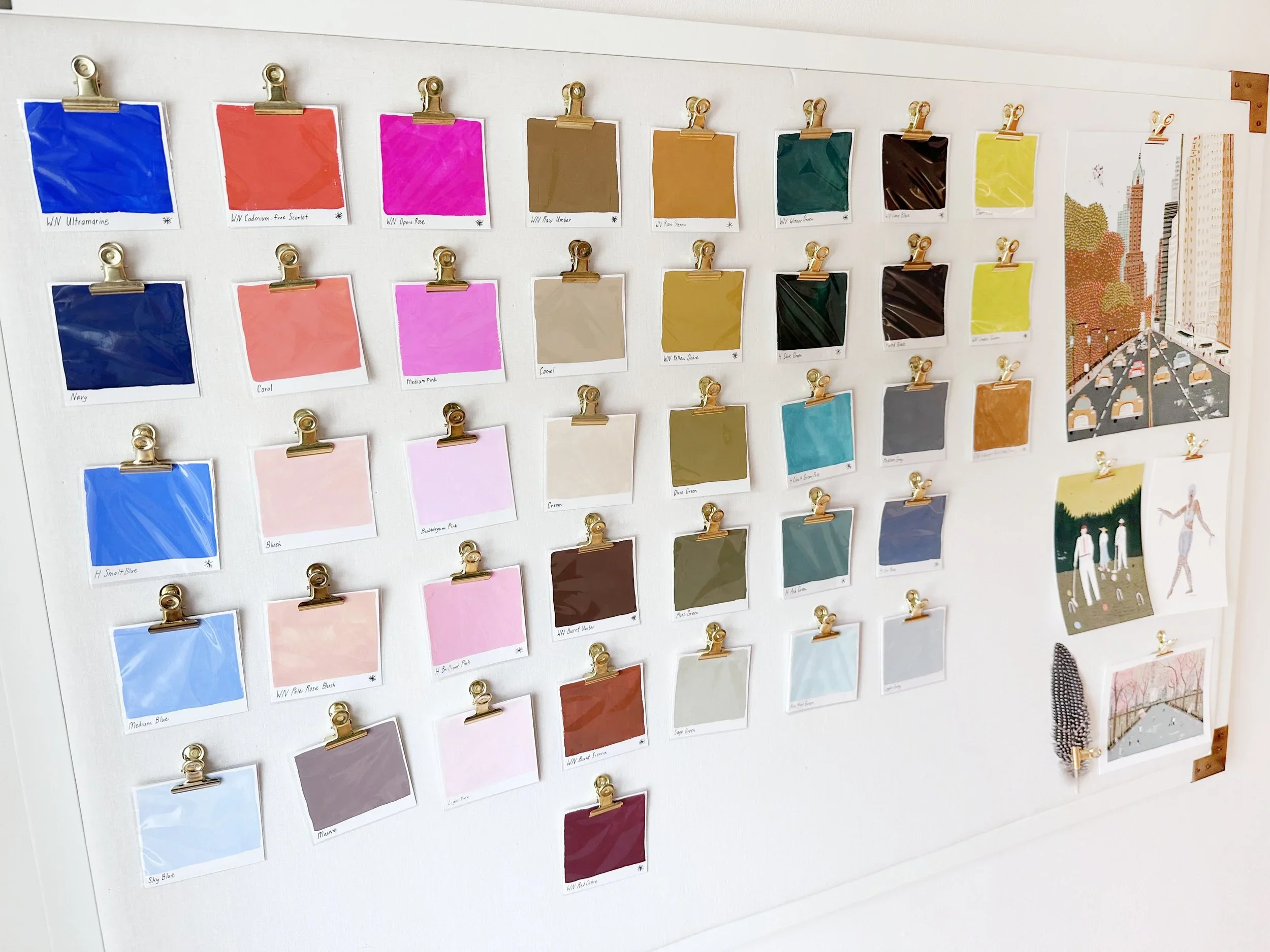 I’ve brought up this practice so many times here on my blog, but I would be doing you a disservice if I didn’t mention it now. If this is your first time hearing about this - basically I made color swatches of every shade I like to use in my work. A few colors I like to use out of the tube. But most, I have certain mixing formulas I like. And the key is to be selective here. Only make swatches for colors you LOVE. When tackling a piece, I always look at my color swatches first and pick out key colors beforehand. I find my work turns out better and is a lot more interesting. The good news is that once you’ve made these swatches you can use them indefinitely, only getting rid of colors you don’t use anymore and adding new favorite shades.